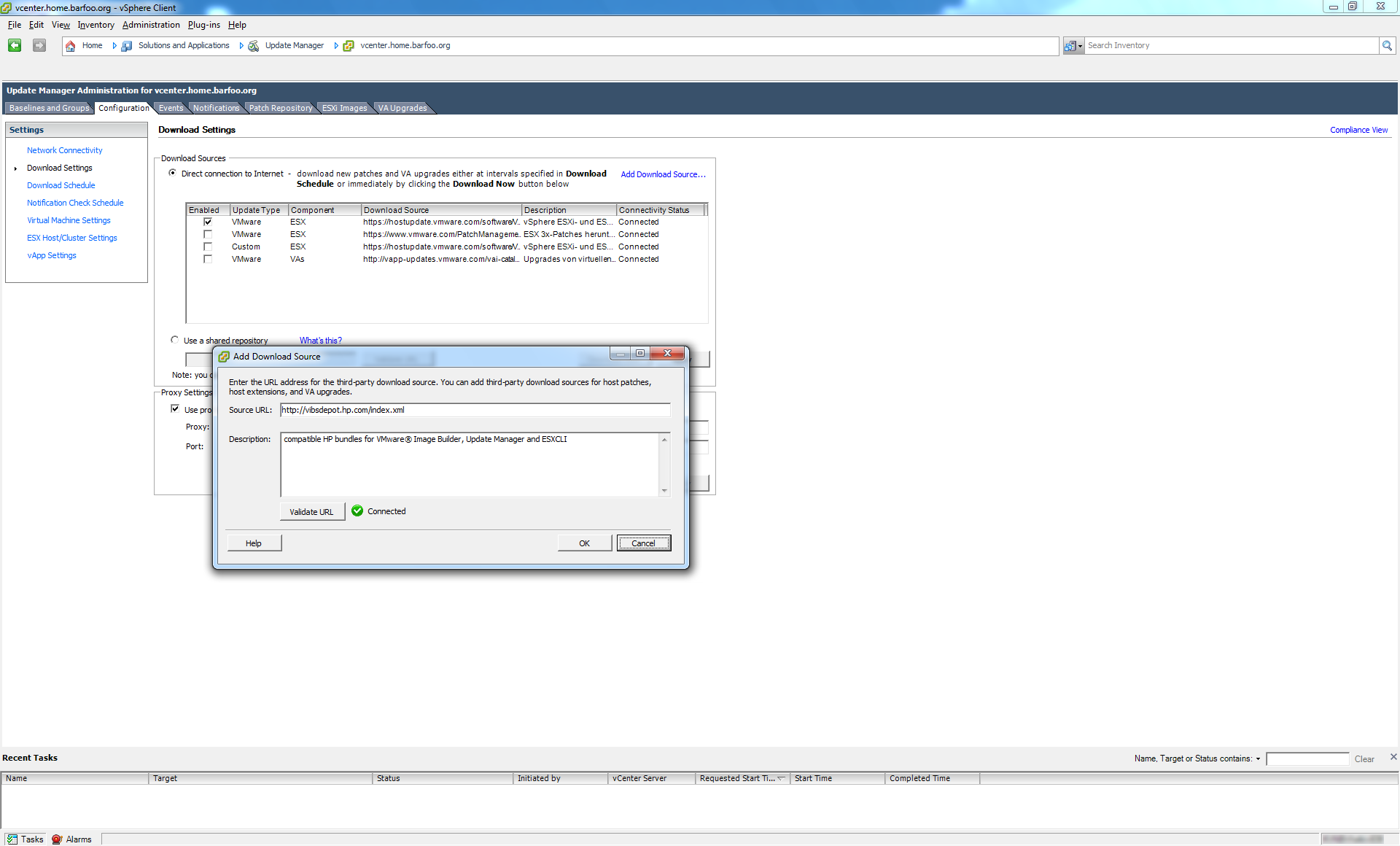 The URL for that repository is http://vibsdepot.hp.com/index.xml. After that is done, you can click on " Apply" and " Download Now" to add the packages to your local software repository. After this, the VIB’s from HP just need to be applied to a set of hosts.