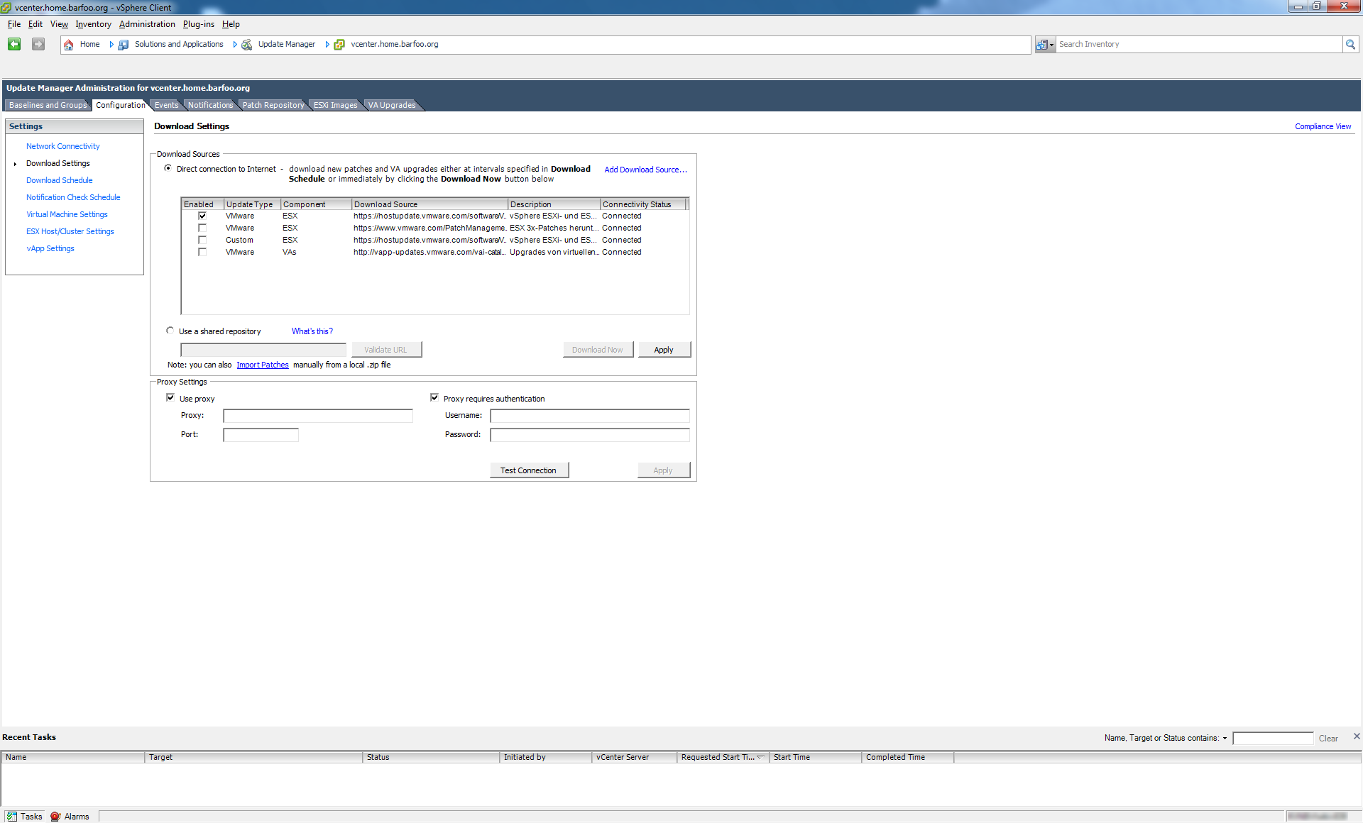 As we’re finally at the point, where I only need to bother with HP hardware (which in itself is troublesome enough), I wanted to use HPs vibdeposit with our Update Manager. The whole purpose of the repository is the integration of HPs custom vibs (download able on each hardware under VMware ESXi 5.0) into the VMware Update Manager. That makes it easy to integrate, say the nmi-sourcing driver, into the VMware built ESXi images.
